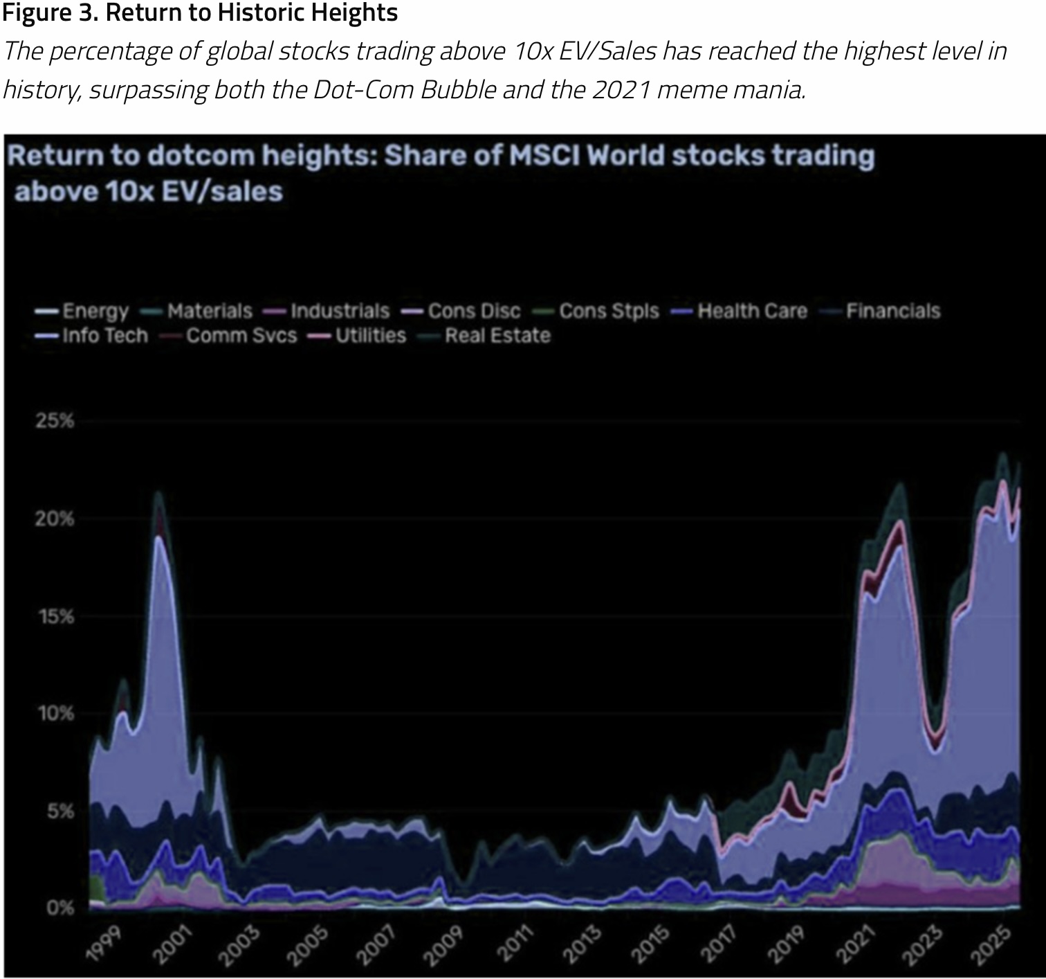 Thanks to David “Haymaker” Hay of Substack for Figure 3 and the context provided. Stocks trading at 10 times sales are generally considered to be in bubble territory. The illogic of paying this type of valuation for most, but not all, equities was famously articulated by Sun Microsystem’s co-founder and then-CEO Scott McNealy in March 2002.* This was after its stock price had been obliterated in the wake of the first tech bubble’s implosion.