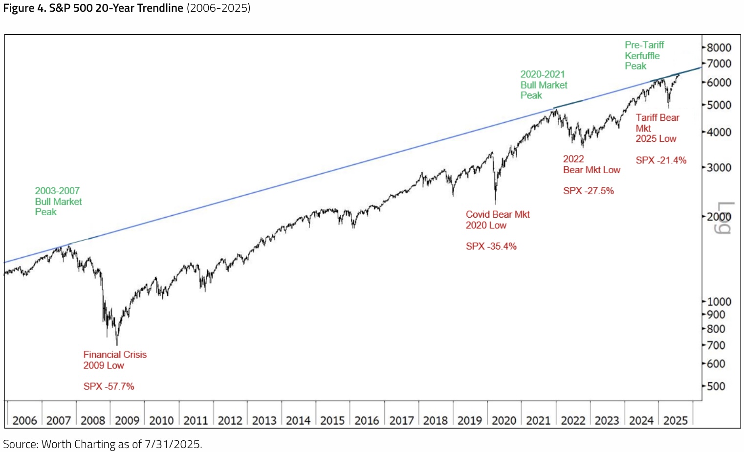 In our view, gold is consolidating its April 2025 spike to $3,500 per ounce. The many factors that launched gold to that temporary peak, including central bank buying, de-dollarization, concerns over the U.S. fiscal situation and geopolitical risk have continuing latency and explain why gold is trading effortlessly in the current range of $3,200 to $3,400. They have been extensively discussed, however, and one might say already “priced in” to the current trading range. What we believe has not been priced in, however, is a significant decline in equities.