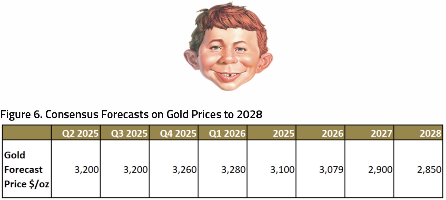 For all but the few investors that pay close attention to gold macros, it seems the consensus expectation is for minimal upside versus considerable downside risk. Figure 6 depicts Wall Street’s bearish consensus expectation. Investor hesitation to position gold stocks most likely is directly connected, in our opinion, to the resolute bullishness that props mainstream equity positioning. Until real economic adversity sets in, interest in gold and gold stock exposure will likely continue to be a case of “Who needs it?” Alfred E. Neuman is alive and well.