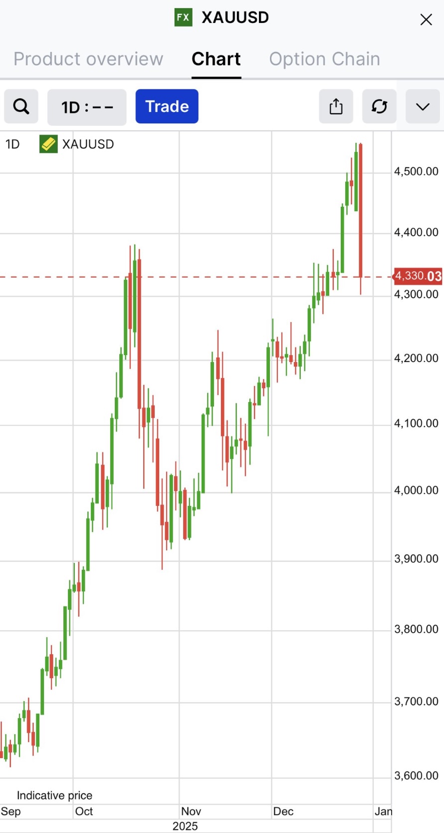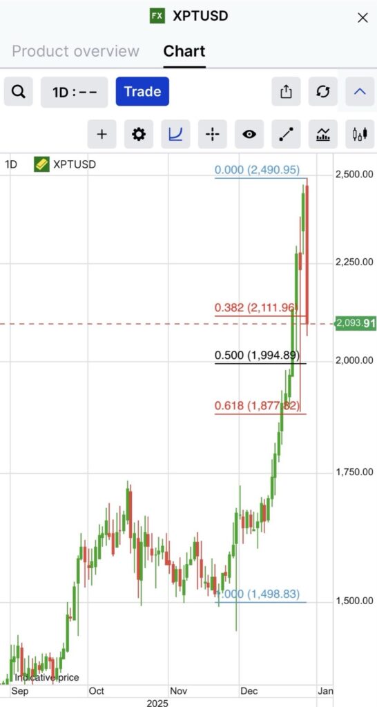 Ole Hansen, Head of Commodity Strategy at SaxoBank: Today’s session has also been painful for platinum bulls. If liquidity is thin in silver, it is even more so in platinum—particularly at this time of year. This does not alter my constructive outlook, but it does underline the need to respect the volatility these markets can deliver. In short, positions should be sized at levels that remain manageable when liquidity evaporates.