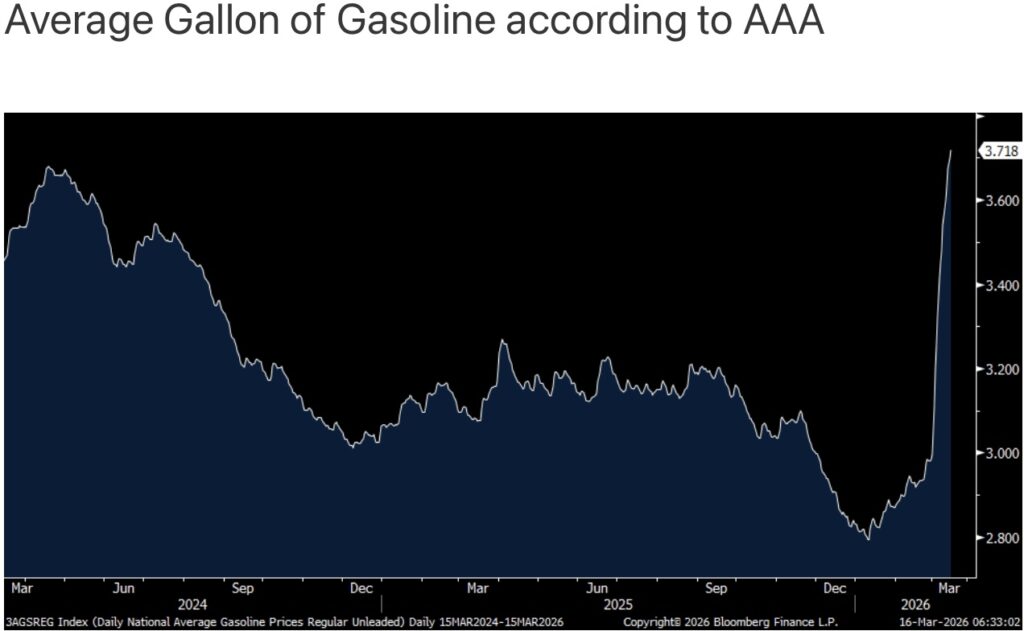 The average gallon of gasoline rose by almost another nickel over the weekend to $3.72 a gallon, up by 21% y/o/y.