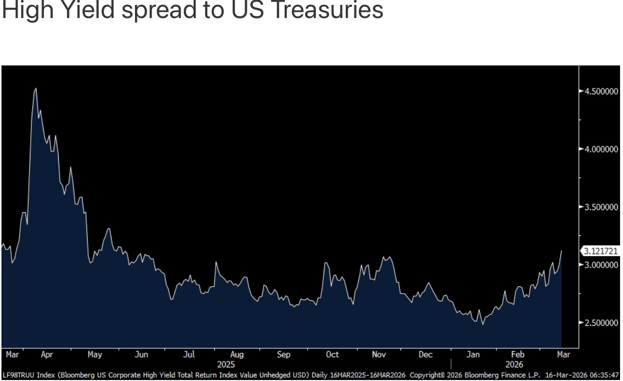 On Friday, the high yield spread to Treasuries broke above 300 bps to 312, the most since last June as we watch to see if there is any spillover from the private credit/leveraged loan markets.