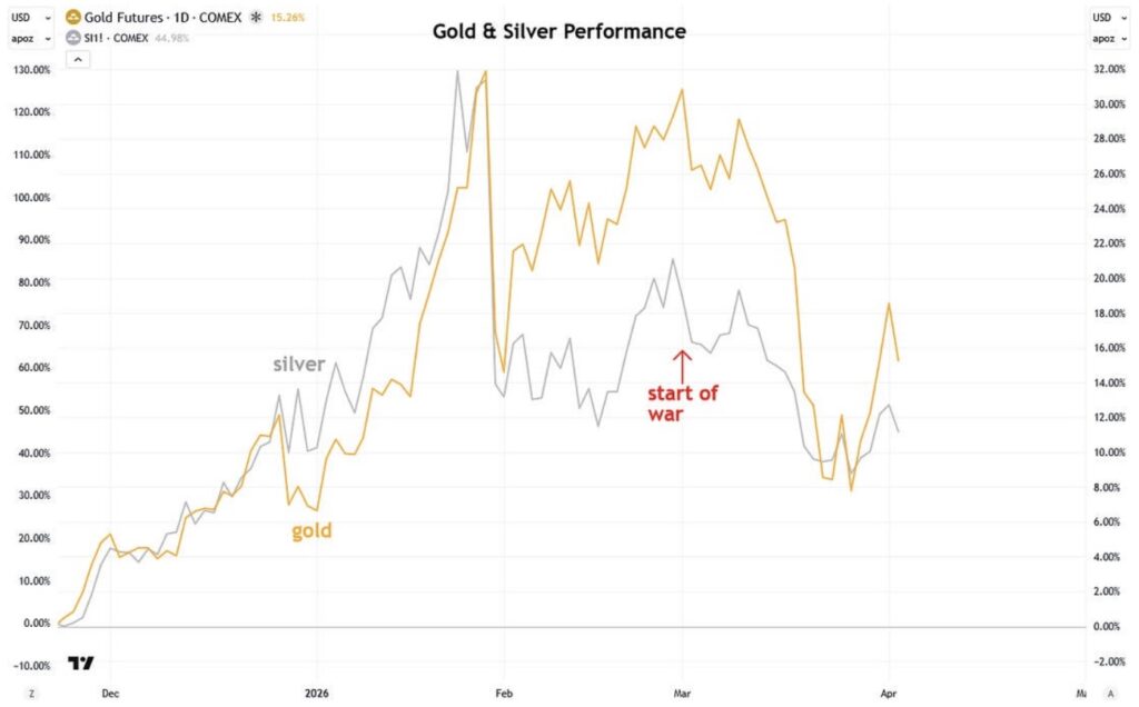 Since the Iran war began a month ago, precious metals have corrected after two years of explosive gains. One of the main reasons, as I recently explained, is that the spike in oil prices has pushed up inflation expectations, which in turn has reduced the odds of rate cuts this year and at times even raised expectations of rate hikes. Precious metals have pulled back as a result, as they are highly sensitive to interest rate expectations given that they do not generate yield.