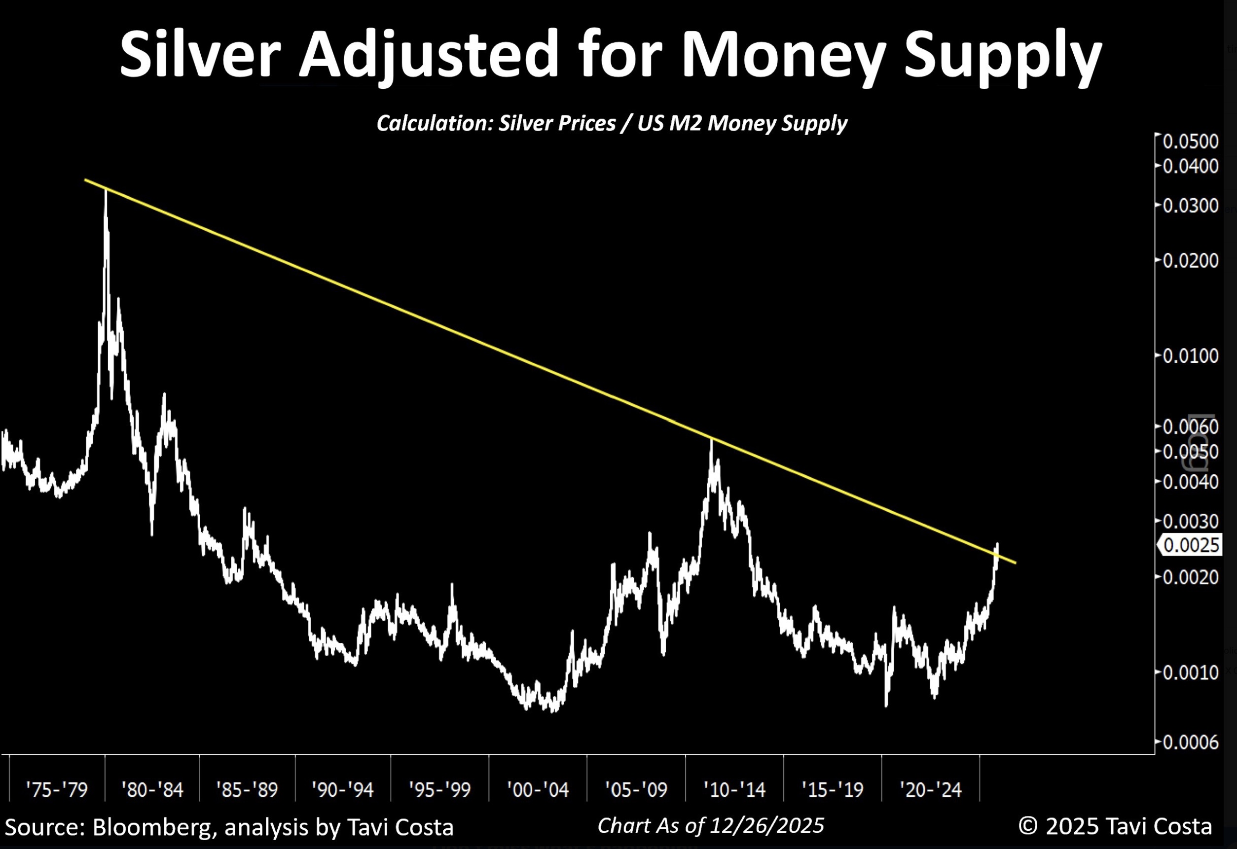 Keep in mind that silver adjusted for money supply is only now breaking out from more than 45 years of resistance.