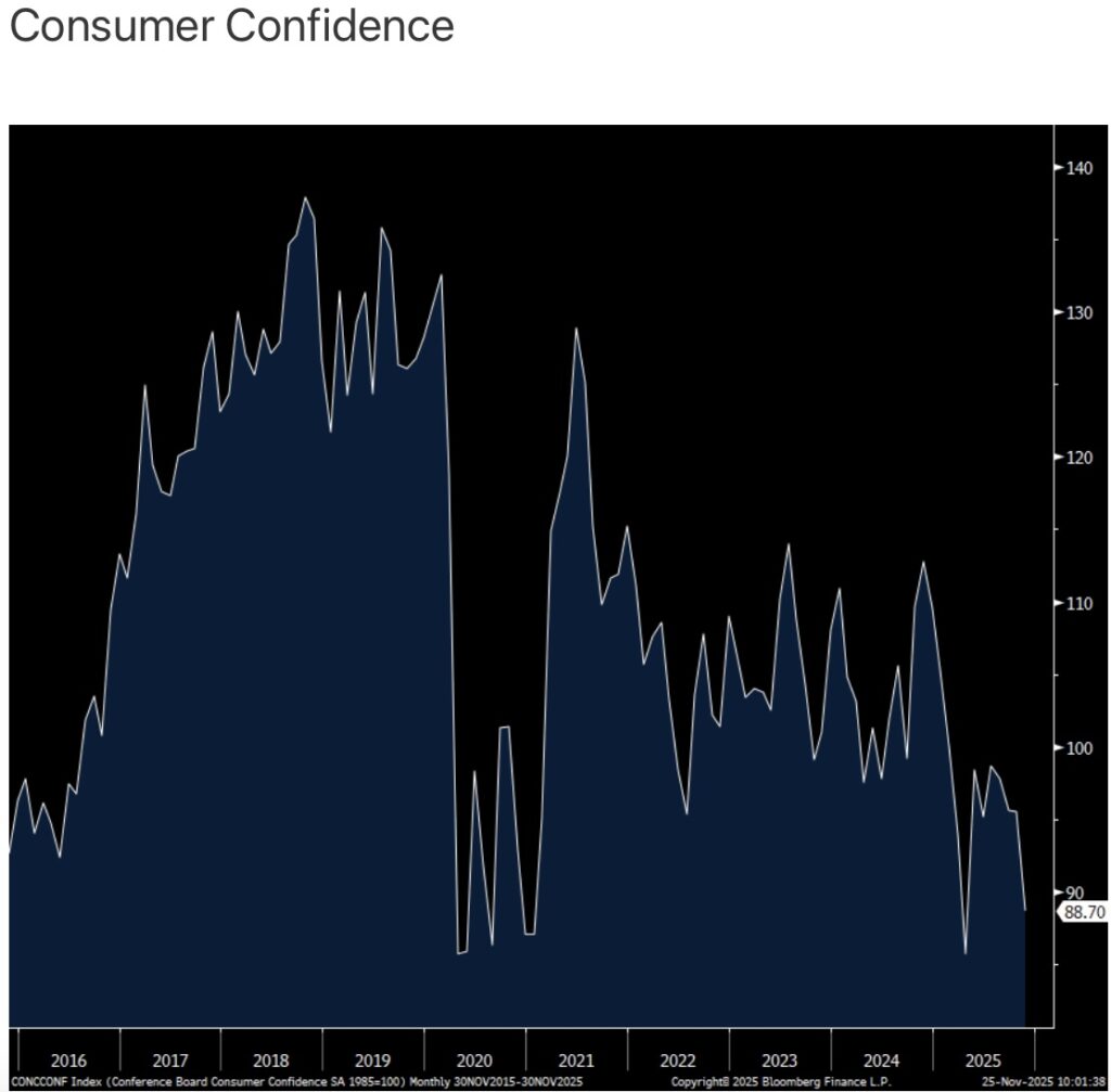 November 25 (King World News) – Peter Boockvar: The November consumer confidence index from the Conference Board fell to 88.7 from 95.5, below the estimate of 93.3 and the 2nd weakest print since January 2021.