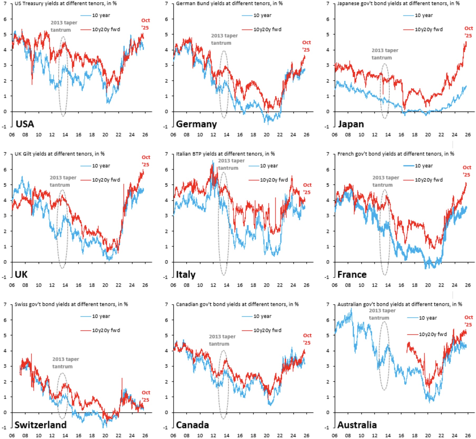 Robin Brooks: The global debt crisis – like all crises – advances in fits and starts. Yesterday, longer-term yields globally rose because of a sharp spike in Japanese yields on news of a fiscal dove as likely new prime minister. There’s just too much debt everywhere.