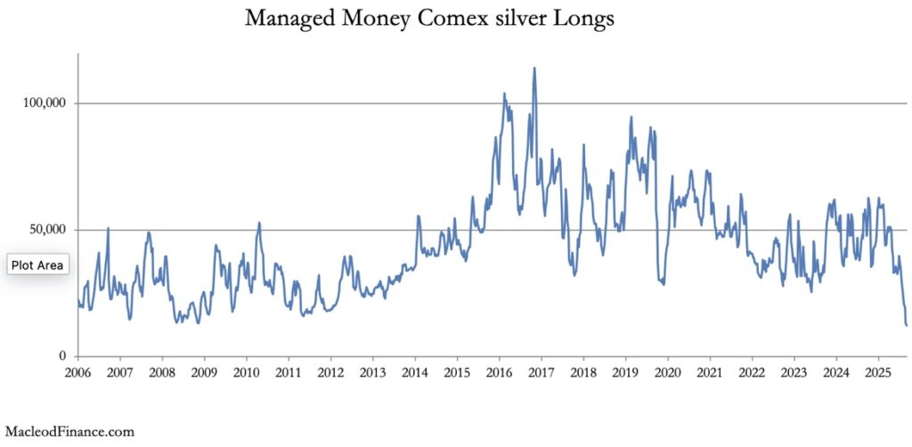 It is all very curious. Technical analysts are saying the silver price is going far higher, but trend-chasing hedge funds and investment managers are sitting firmly on their hands. It suggests that if silver resumes its march higher, disbelieving investors and speculators will change their minds but find there is no stock available at anything near current prices. And as commented above, gold is in a similar position but with more liquidity, likely to underwrite and possibly turbocharge the silver bull.