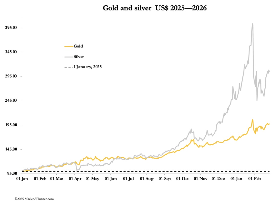 February 27 (King World News) – Alasdair Macleod: Gold was steady but silver volatile as Comex March contracts matured. Suspension due to “technical failures” saw high volatility in silver which has since recovered.