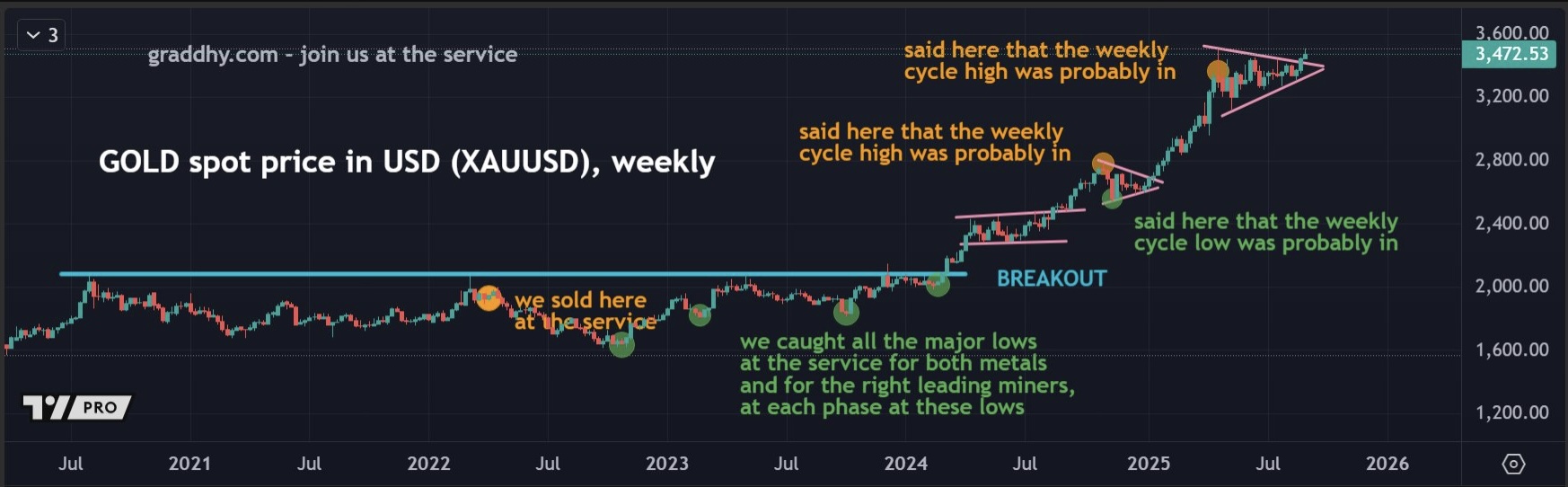 Graddhy out of Sweden: Gold has now broken out to the upside of the pink triangle as expected.