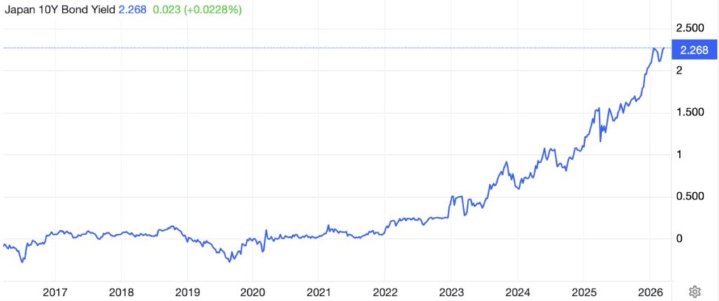 Clearly, inflation of prices will be a major problem for Japan in the coming months. Not only will the Bank of Japan be forced to raise interest rates sharply if it is to prevent the yen collapsing. Equities will crash and bond yields soar. As the chart below illustrates, these bond yields are already the highest they have been for decades: