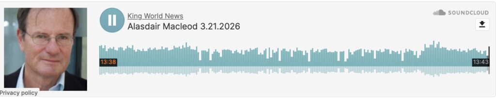 March 21 (King World News) – Alasdair Macleod: Paper gold and silver have sold down in very light trade. The bullion establishment is scrambling to close its shorts and go long as the outlook for gold gets increasingly bullish.