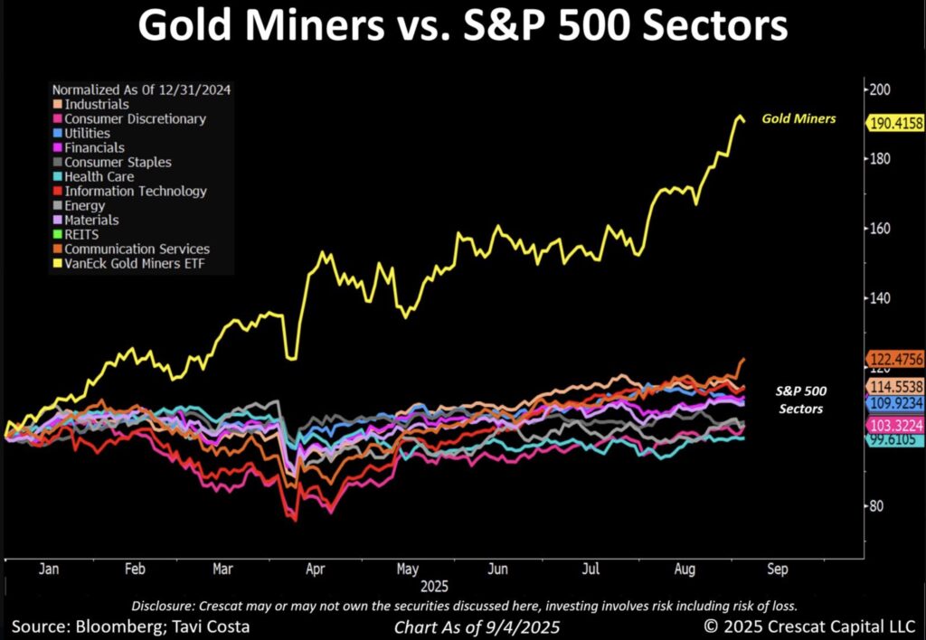Peter Boockvar: Investors continue to miss out on the bull market in gold mining stocks. The GDX has more than doubled so far in 2025. Worse, many investors who owned GDX when the year began already sold their shares, as there have been net redemptions all year as investors cashed out early.