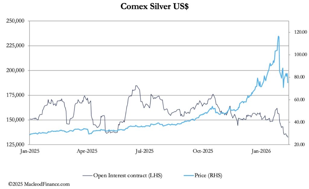 While all this looks immensely bullish, Shanghai will be closed next week for the Chinese New Year holidays. As the true pricing centre for silver and ahead of 26 February’s first position, bullion bank traders seeking to close their Comex shorts might work together to drive paper prices lower. It might be their last chance to do so.