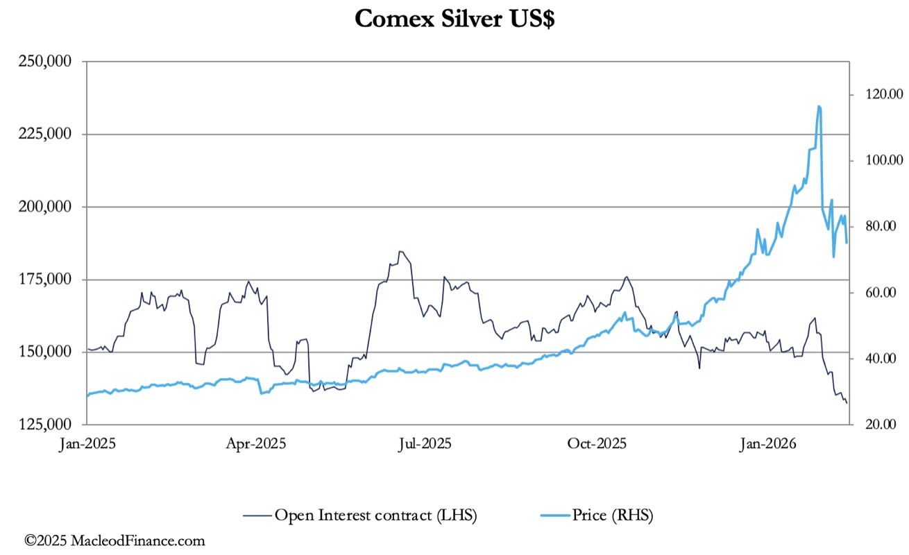 While all this looks immensely bullish, Shanghai will be closed next week for the Chinese New Year holidays. As the true pricing centre for silver and ahead of 26 February’s first position, bullion bank traders seeking to close their Comex shorts might work together to drive paper prices lower. It might be their last chance to do so.