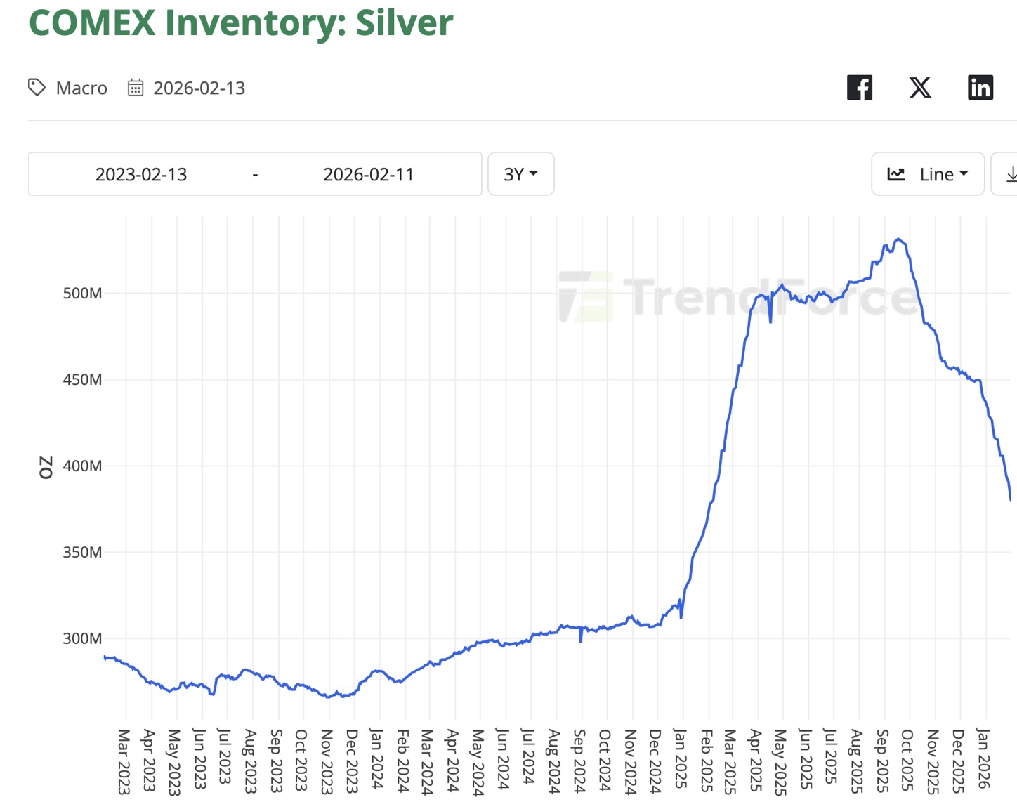On Comex, the theoretical total available for delivery today is the equivalent of only 18,606 contracts. Meanwhile, open interest in the March future is 59,418 contracts, whose first position (when longs are allocated deliveries for which they must have the funds up front) is 26 February, a week on Thursday.