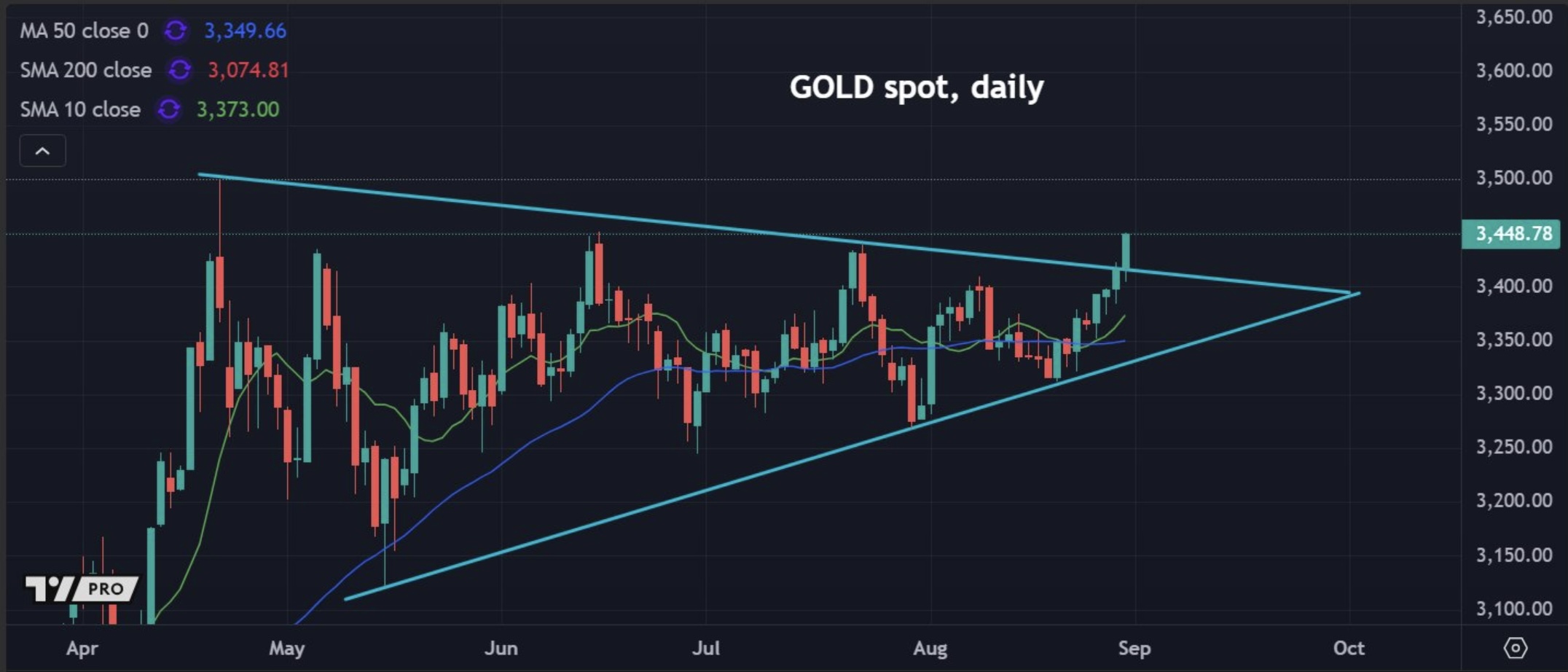 September 2 (King World News) – Graddhy out of Sweden: I have been stating that gold will break to the upside from its blue triangle.