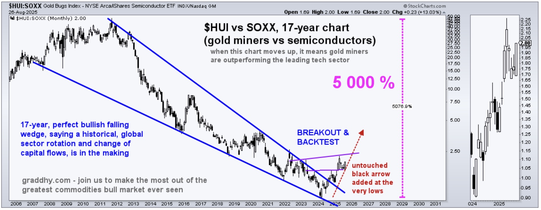 KING WORLD NEWS NOTE: HUI Gold Mining Index Set To Skyrocket vs SOXX Tech Stocks