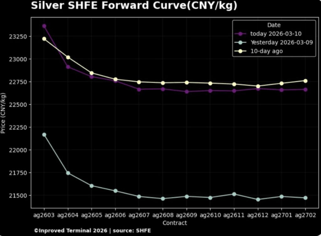 Silver liquidity continues in short supply in London and Shanghai. However, the Shanghai price is down slightly this morning at $94 with a premium over London spot maintained at about 13%. Despite this, backwardation has existed in Shanghai futures during the week:
