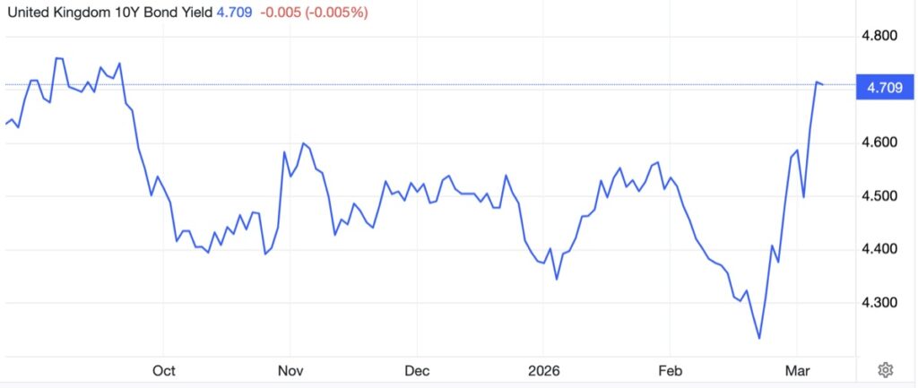 The scale of the war disaster is only beginning to be discounted in markets. It is said that oil feeds into 45,000 products, and an oil shock which could turn out to be the greatest in modern history will push up prices across the board, collapsing the purchasing power of currencies. No wonder bond yields are rising and will have much further to go. And logistics are also mess, with ships displaced and bunkers locked up in the Gulf creating fuel shortages.