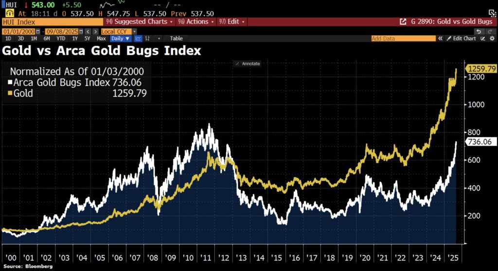 Holger Zschaepitz: Mind the Gap: Gold prices have climbed to new record highs, but gold mining stocks haven’t kept up. In fact, mining shares have been lagging well behind, a trend that has persisted since 2013.