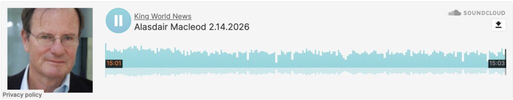 To listen to Alasdair Macleod discuss the end of the COMEX price rigging scheme and China’s push for significantly higher silver prices CLICK HERE OR ON THE IMAGE BELOW.