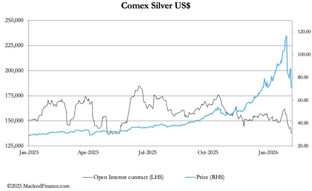 We’ll see what the foreign holders of $44 trillion and underlying financial assets make of that, in the context of the US dollar debt trap being slammed firmly shut! To listen to Alasdair Macleod discuss the collapse in Open Interest in the gold and silver markets CLICK HERE OR ON THE IMAGE BELOW.