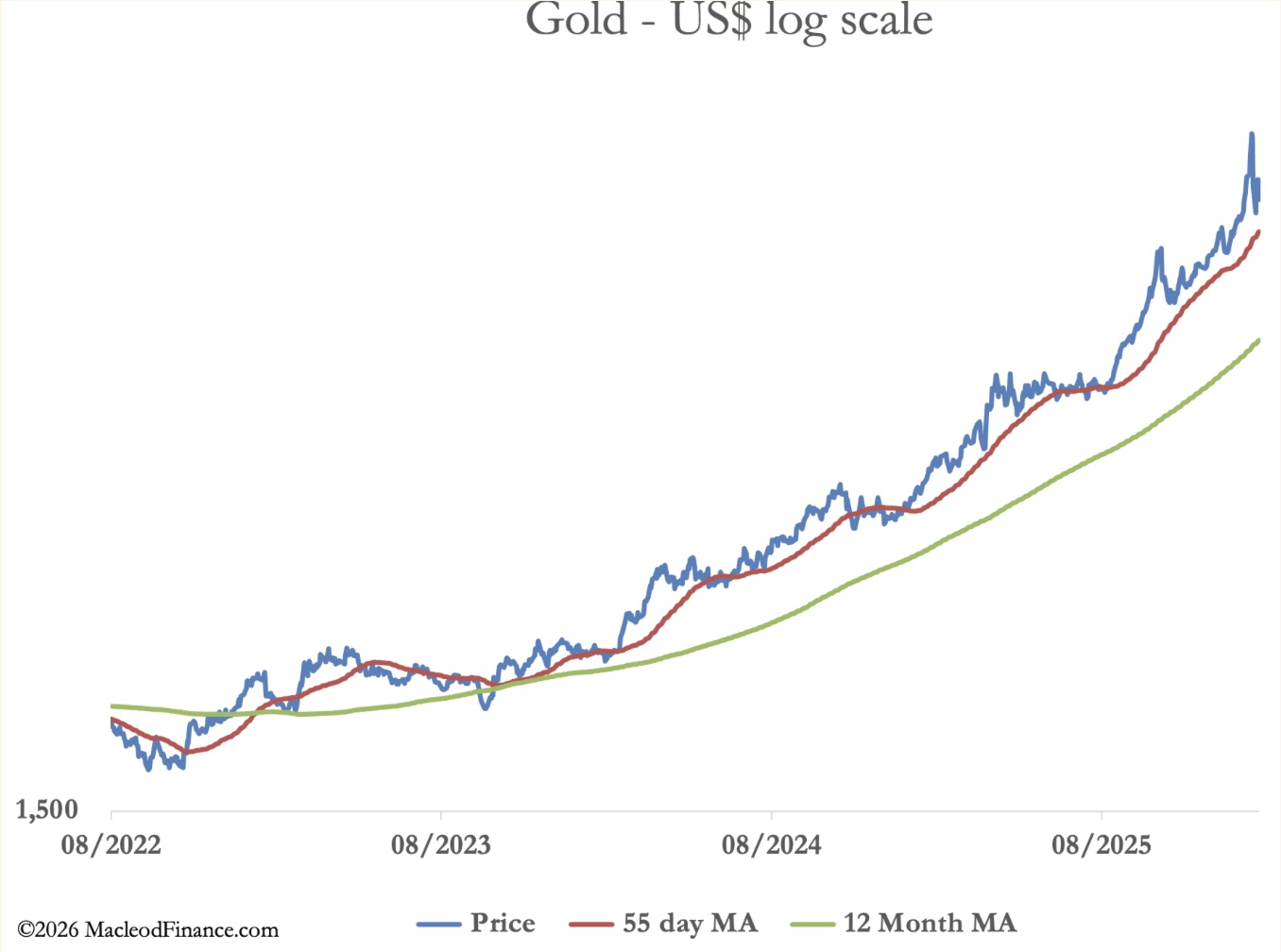 The fundamental reasons for stacking gold still apply. Furthermore, most of the big US banks are forecasting higher gold prices over 2026 with their investment funds seriously underweight. And reliable anecdotal evidence is that larger investors are taking the opportunity to buy more physical gold (and silver if they can get it) and are not put off by current developments. This is important, because it isolates the cause of price volatility as a function purely of derivatives.