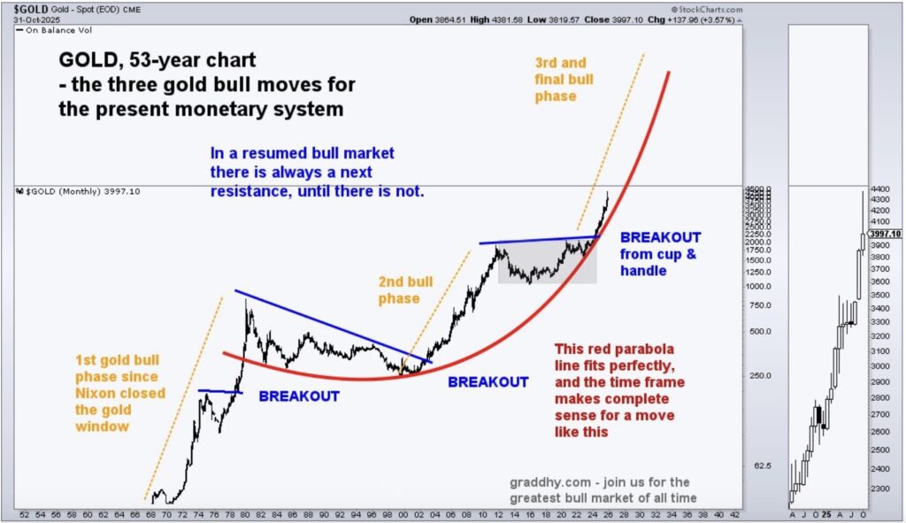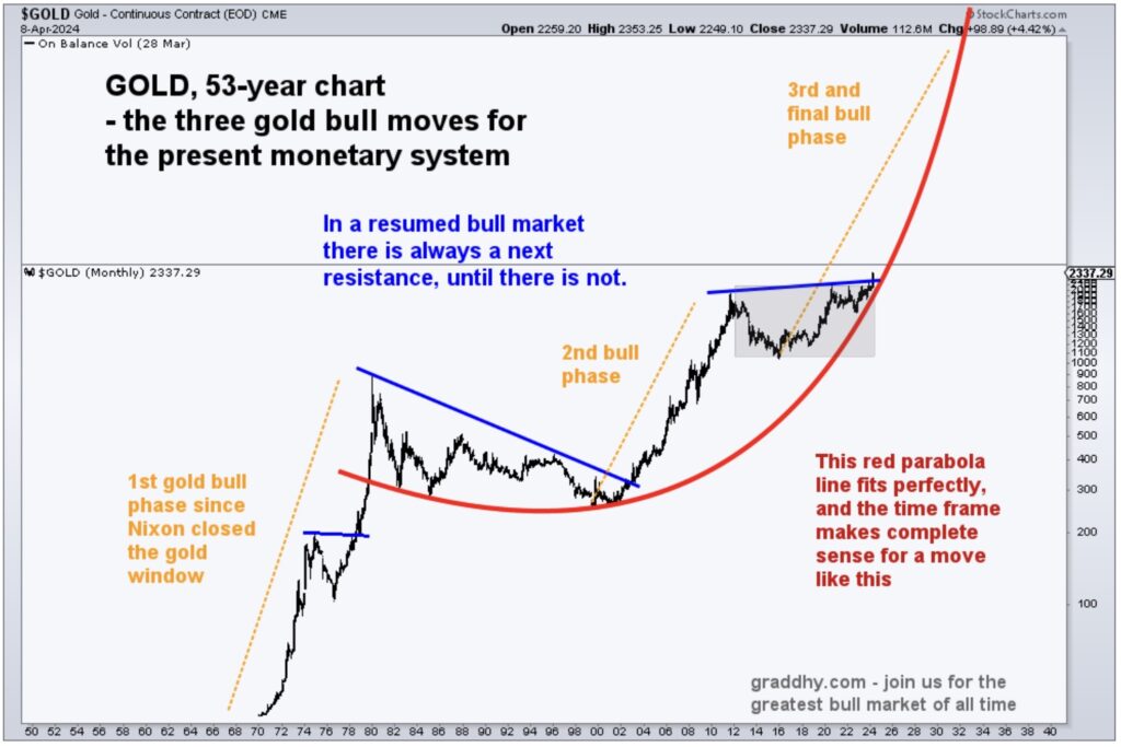 Graddhy out of Sweden: Gold is in a 45-year parabolic slingshot-move.
