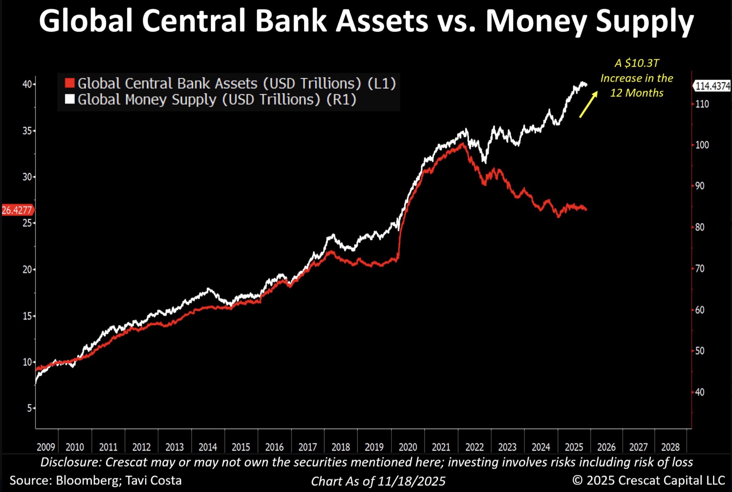 Otavio Costa:  Crazy to think that money supply is expanding this aggressively even as global central bank balance sheets have been contracting.