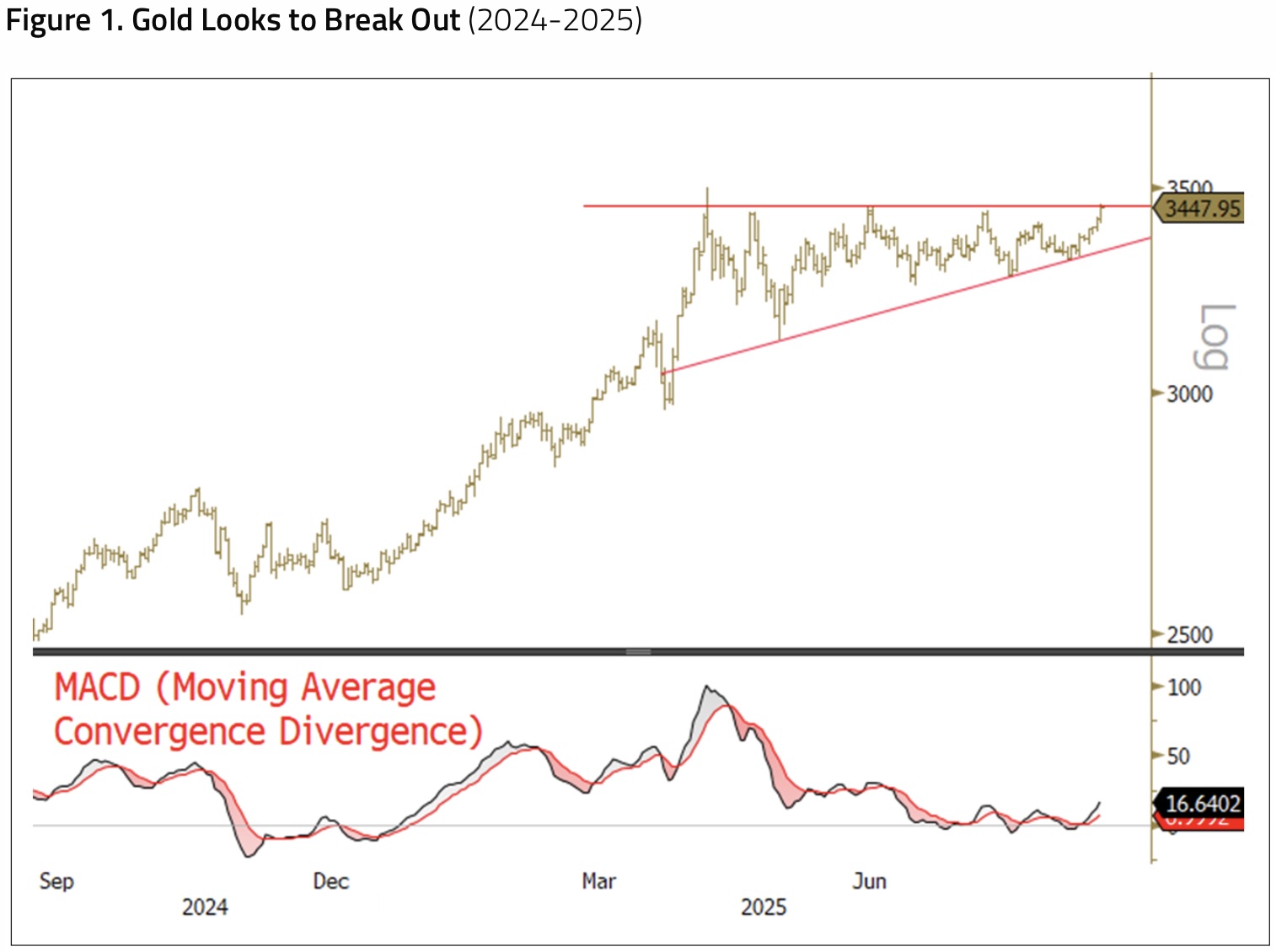 September 9 (King World News) – Paul Wong, Market Strategist at Sprott: In August, spot gold increased $158.02 per ounce (or 4.80%) to close the month at $3,347.95, an all-time closing high. Spot gold was up 31.38% year-to-date at the end of August, its best year-to-date performance since 1979. Gold is well on its way to being one of the strongest-performing asset classes for another year. After a sharp rise into April’s tumultuous tariff-driven market stress, gold went into a time correction pattern (see Figure 1) as risk assets rallied, but gold holders held onto their positions. With equity positioning now reaching the upper end of likely allocations, in our view, and risk headlines building, gold has broken out of its consolidation range. The technical chart pattern can be viewed as a bullish flag breakout, a pattern that typically sees a sharp rise.
