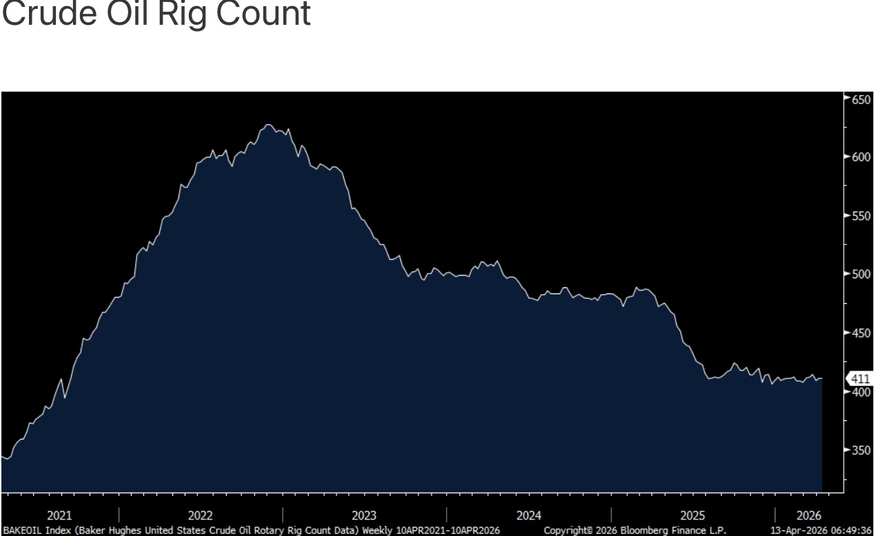 The US oil patch is still not responding to higher prices and again, looking at the back end crude oil futures market rather than front month in making drilling decisions. The Baker Hughes crude oil rig count was unchanged w/o/w and up just 4 since the war broke out, still hovering around the lowest level since September 2021.