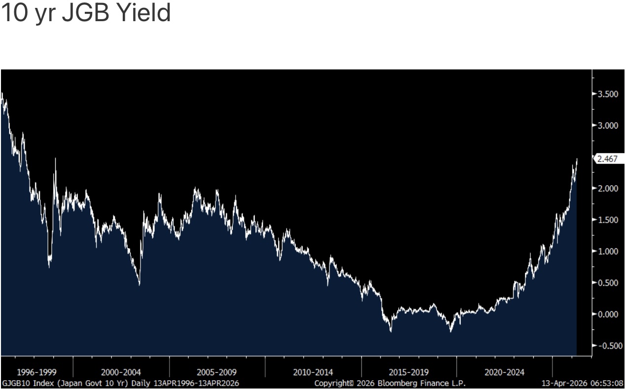 With respect to global bond yields, which are rising again today, the 10 yr JGB yield closed at 2.47%, matching the highest level since 1997. The German 10 yr bund yield is just 2 bps from a 15 yr high.