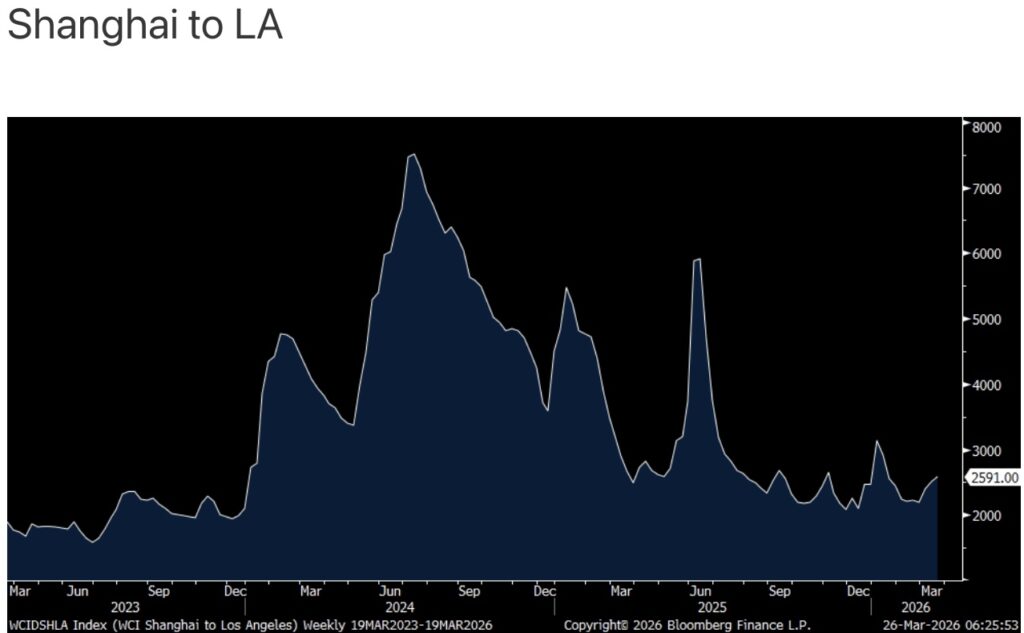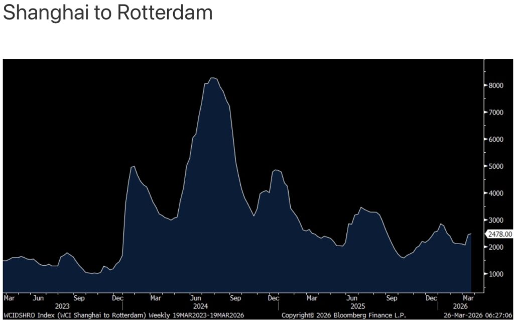 Container shipping prices continue to rise but as the Houthi’s haven’t yet disrupted the Red Sea, they still remain relatively muted. The Shanghai to LA trip rose by $95 to $2,686 to the highest since mid January. The route to NY rose by a similar amount to $3,393 and to Rotterdam, Netherlands from Shanghai too to $2,552.