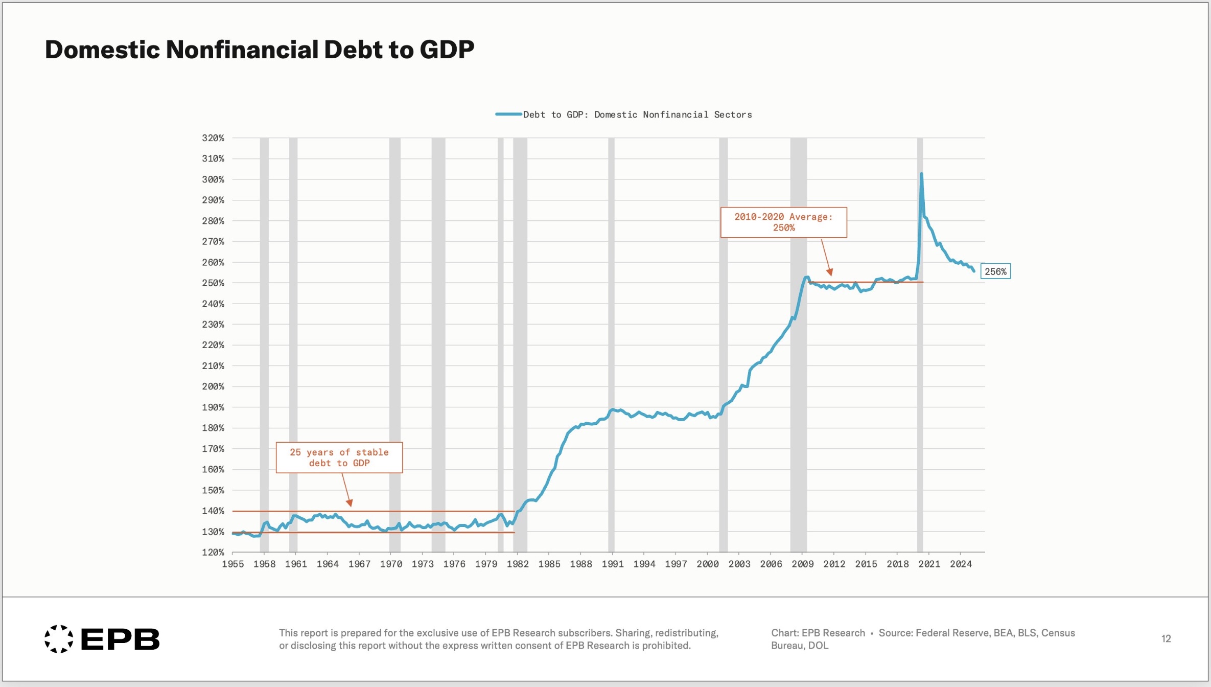 Eric Basmajian founder of EPB Research:  Domestic nonfinancial debt-to-GDP sits at 256%.