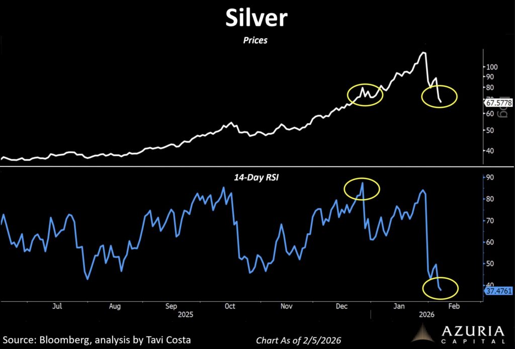 Today, at the same price, RSI sits around 30 — and the world is panicking.