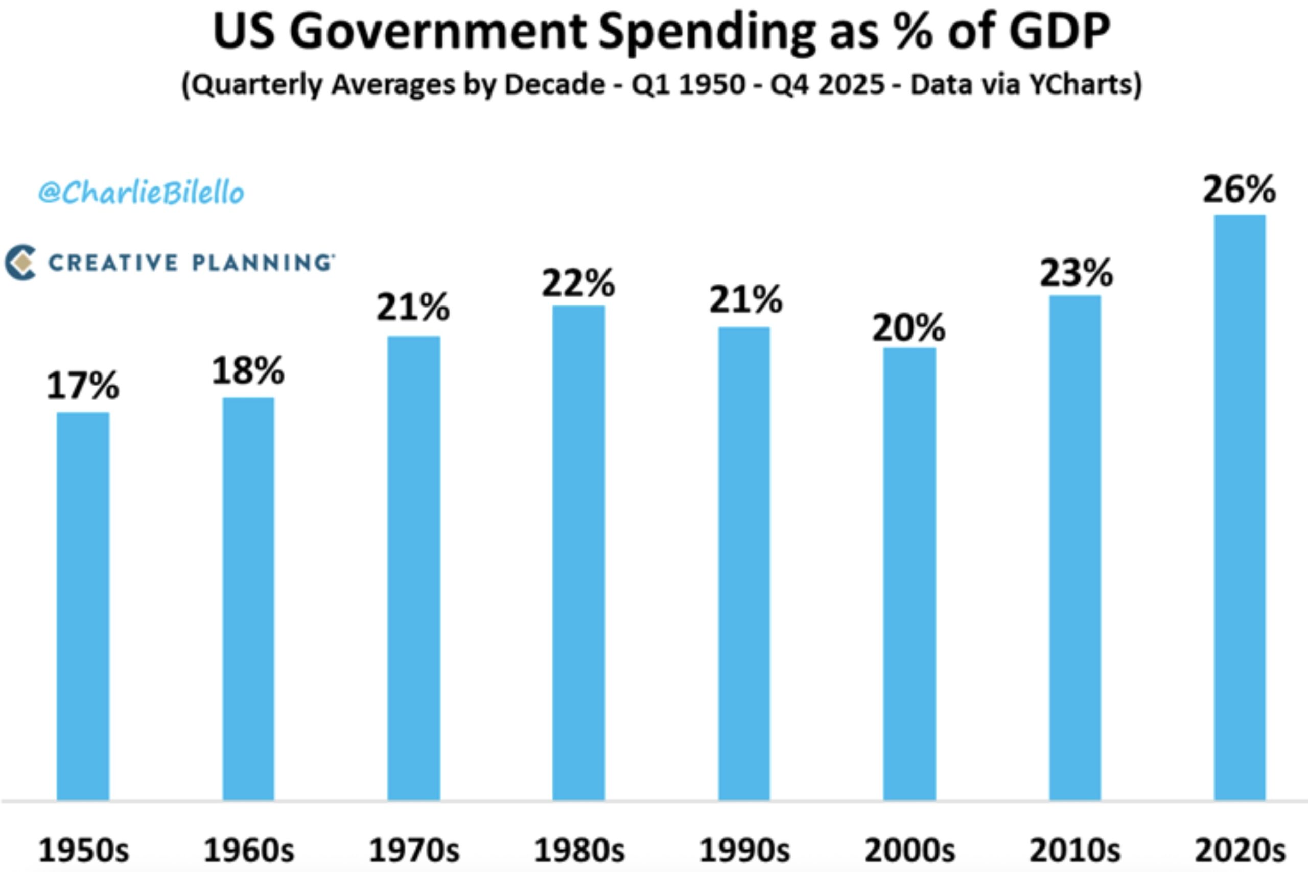 Charlie Bilello: US Federal Government Spending as % of GDP…