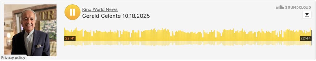 October 23 (King World News) – Gerald Celente: Regional bank stocks crumbled [last] Thursday after Zions Bancorp said it wrote off $50 million in the third quarter on bad loans to auto parts supplier First Brands, which filed bankruptcy late last month.