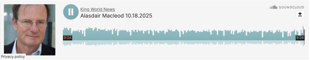 To listen to Alasdair Macleod discuss Friday’s pullback in gold, silver and the mining stocks as well as what to expect next CLICK HERE OR ON THE IMAGE BELOW.