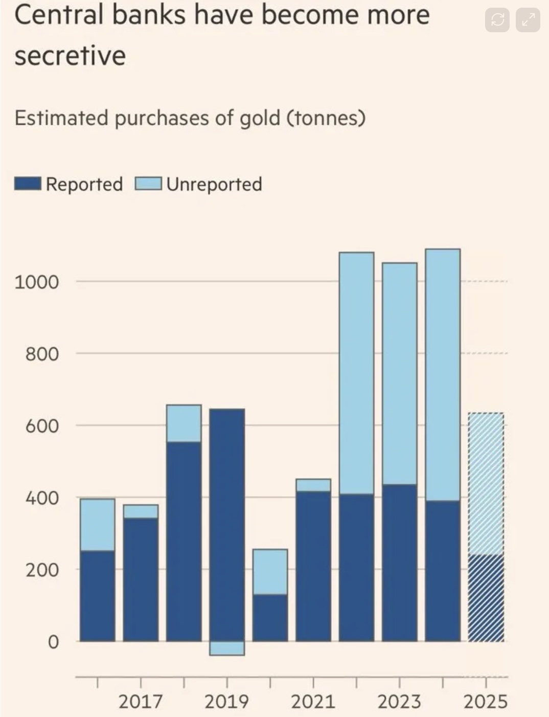 Behind the scenes, more and more countries are shifting their reserves away from currency risk and toward geopolitically neutral assets.