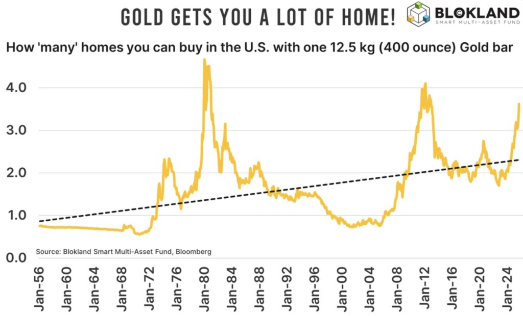 Jeroen Blokland: If you view a house and gold as attractive ways to store value, gold is the clear winner. After the recent price spike, you can buy 3.6(!) median-priced houses in the United States. Obviously, you can not live inside a gold bar.
