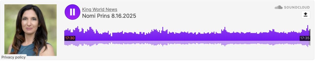 To listen to Nomi Prins discuss her latest predictions for where the prices of gold and silver are headed along with the mining stocks and the uranium sector CLICK HERE OR ON THE IMAGE BELOW.