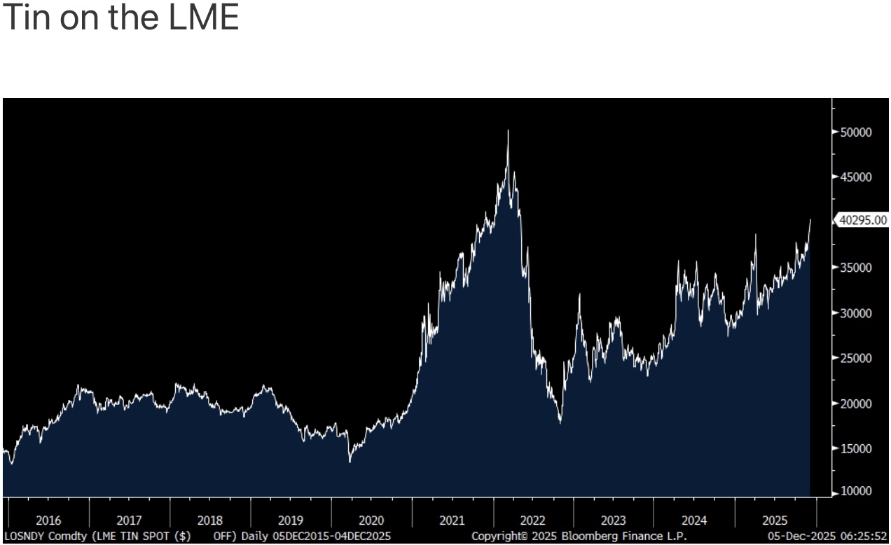We talk copper, gold, silver but did you know that the price of tin yesterday closed at the highest level since April 2022.