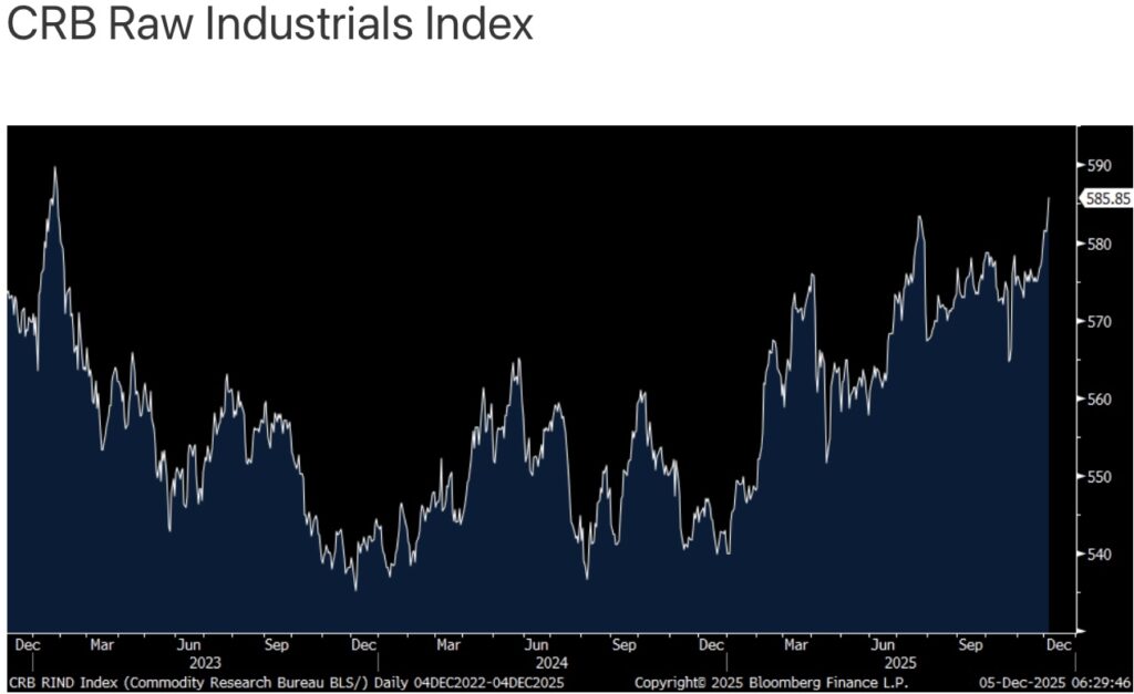 As for the CRB raw industrials index, it closed yesterday at the highest level since January 2023.